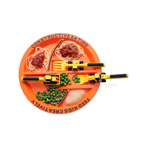 The Construction Plate turns mealtime into a construction site and when used with the construction tools (sold separately), your child's imagination will soar. The ramps enable young construction workers to easily load up their forks and spoons and work especially well when handling challenging "construction" materials such as rice, peas and mashed potatoes! BPA-free. Dishwasher safe. Microwave safe.