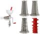 OXO food mill with three removable stainless steel discs: fine, medium and coarse. 2/3 quart. One button for easy disc changing. Dishwasher safe. Consumer preferred.