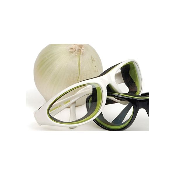 Onion goggles are the tear-free solution to raw onions. Used and preferred by our cooking school prep team and instructors. Unisex design will fit most face shapes. Comfortable foam seal protects eyes from irritating onion vapors. Anti-fog lenses offer maxiumum clarity and eye protection. Includes storage case. Black.