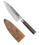 A display-worthy chef's knife almost too stunning to use. Hand-sharpened by highly skilled artisans, the full-tang X-7 steel blade ripples with a beautifully hammered surface that encourages sliced foods to slide right off. Faux wood grain in blue and black streaks the lightweight and durable octagonal handle, secured with a single mosaic rivet as a luxurious finishing touch. Presented in a deep blue wood magnetic sword-style sheath for secure storage, the exceptionally sharp chef knife makes a sensational wedding, graduation or housewarming gift.